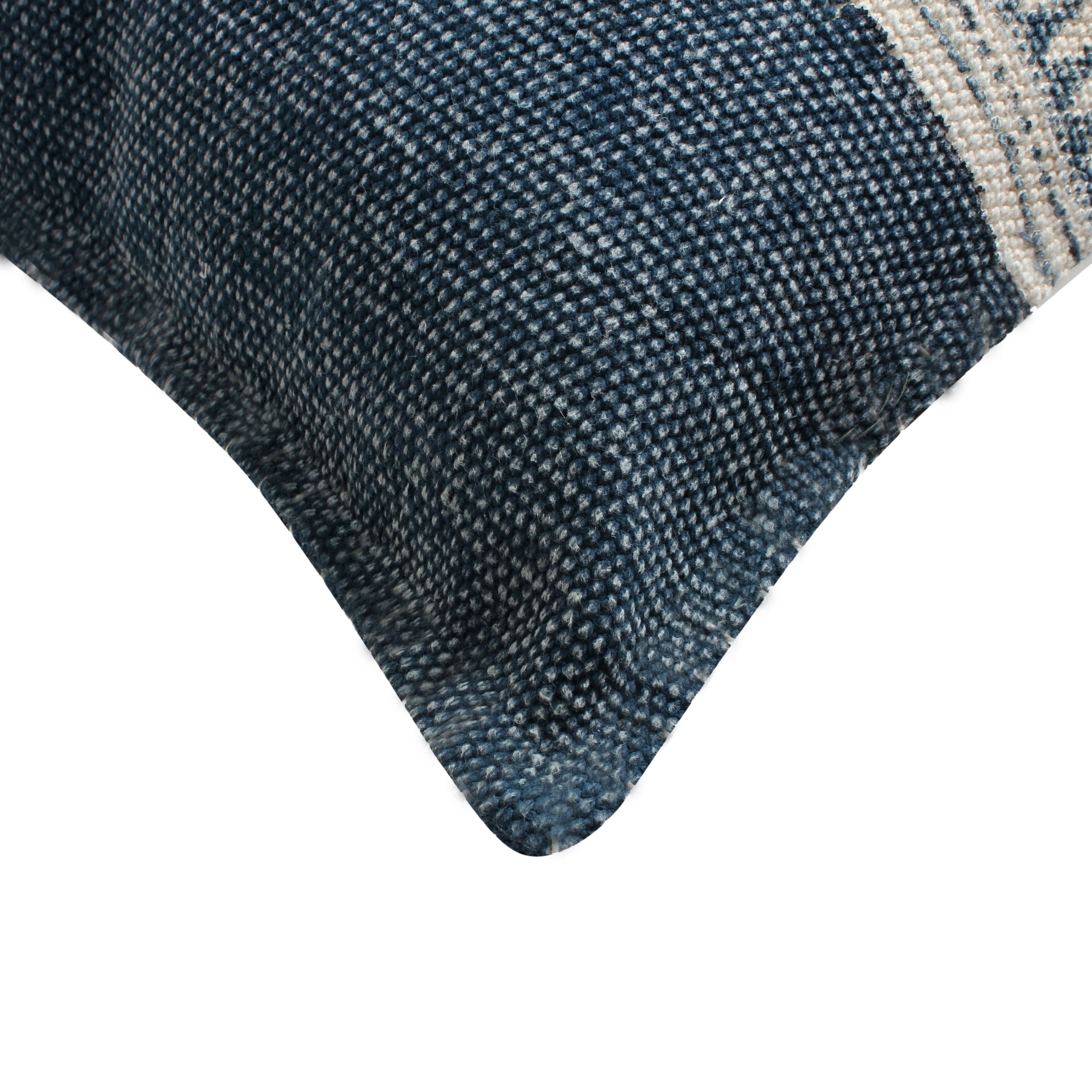Home > 18 x 18 Square Handwoven Accent Throw Pillow, Polycotton Dhurrie, Kilim Pattern, White, Blue