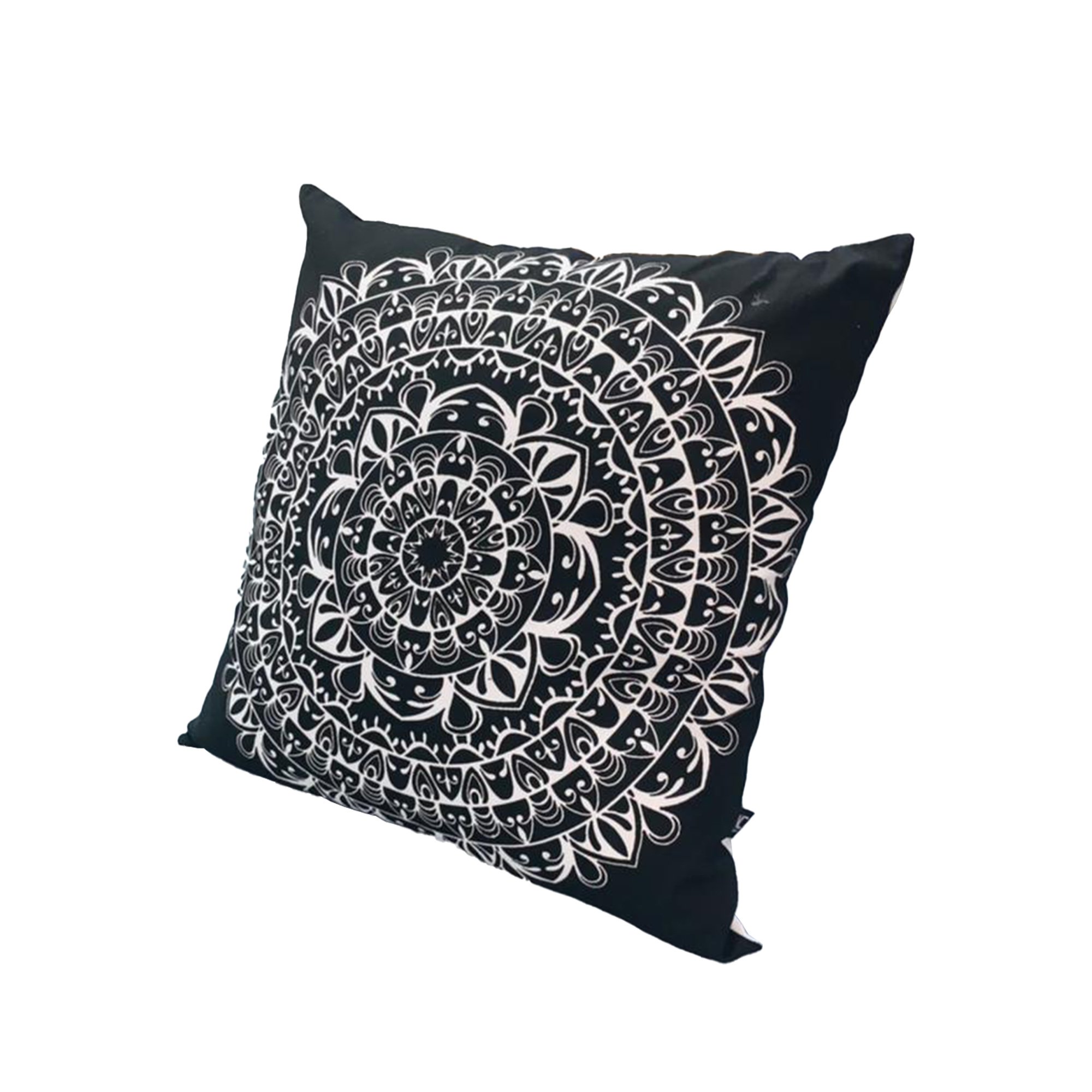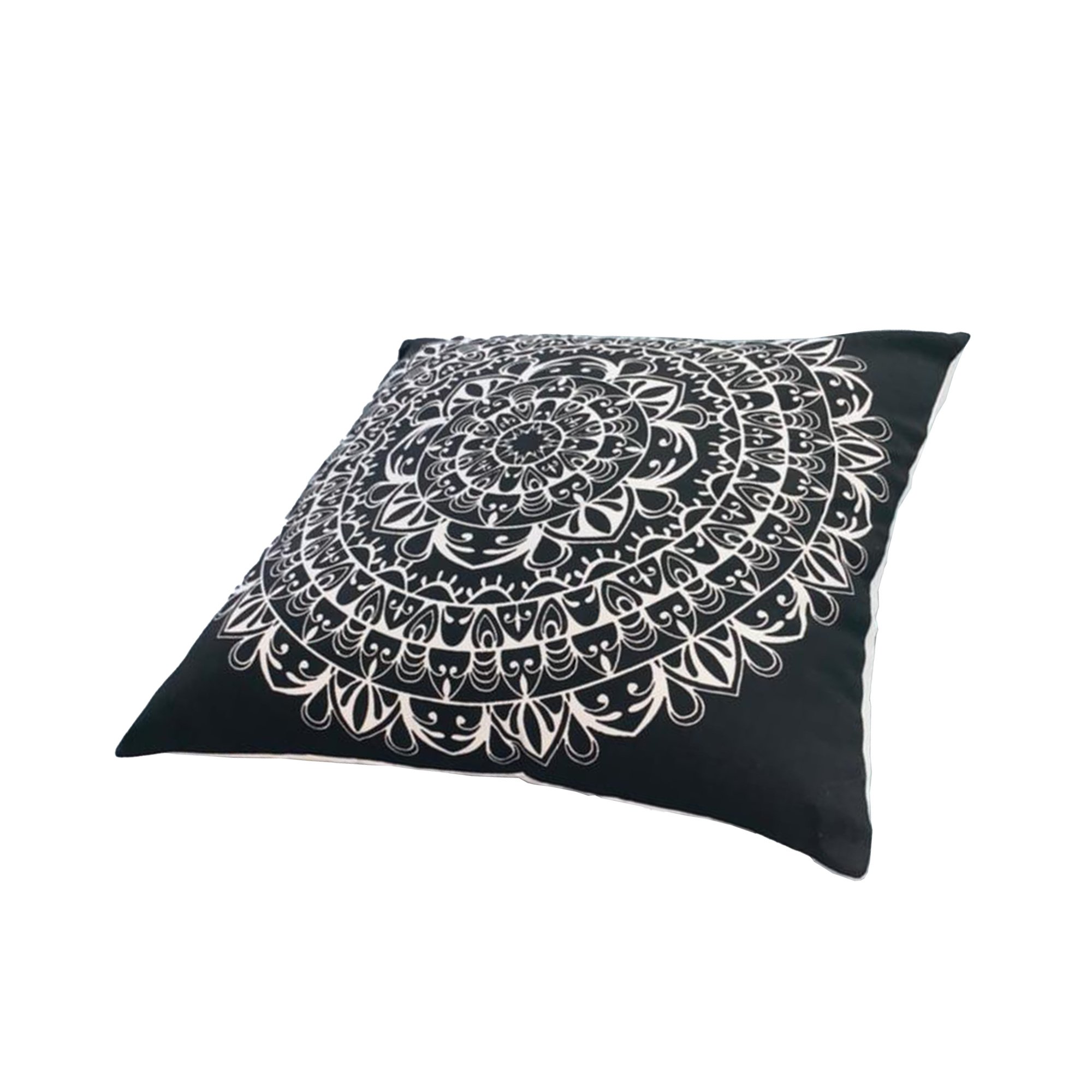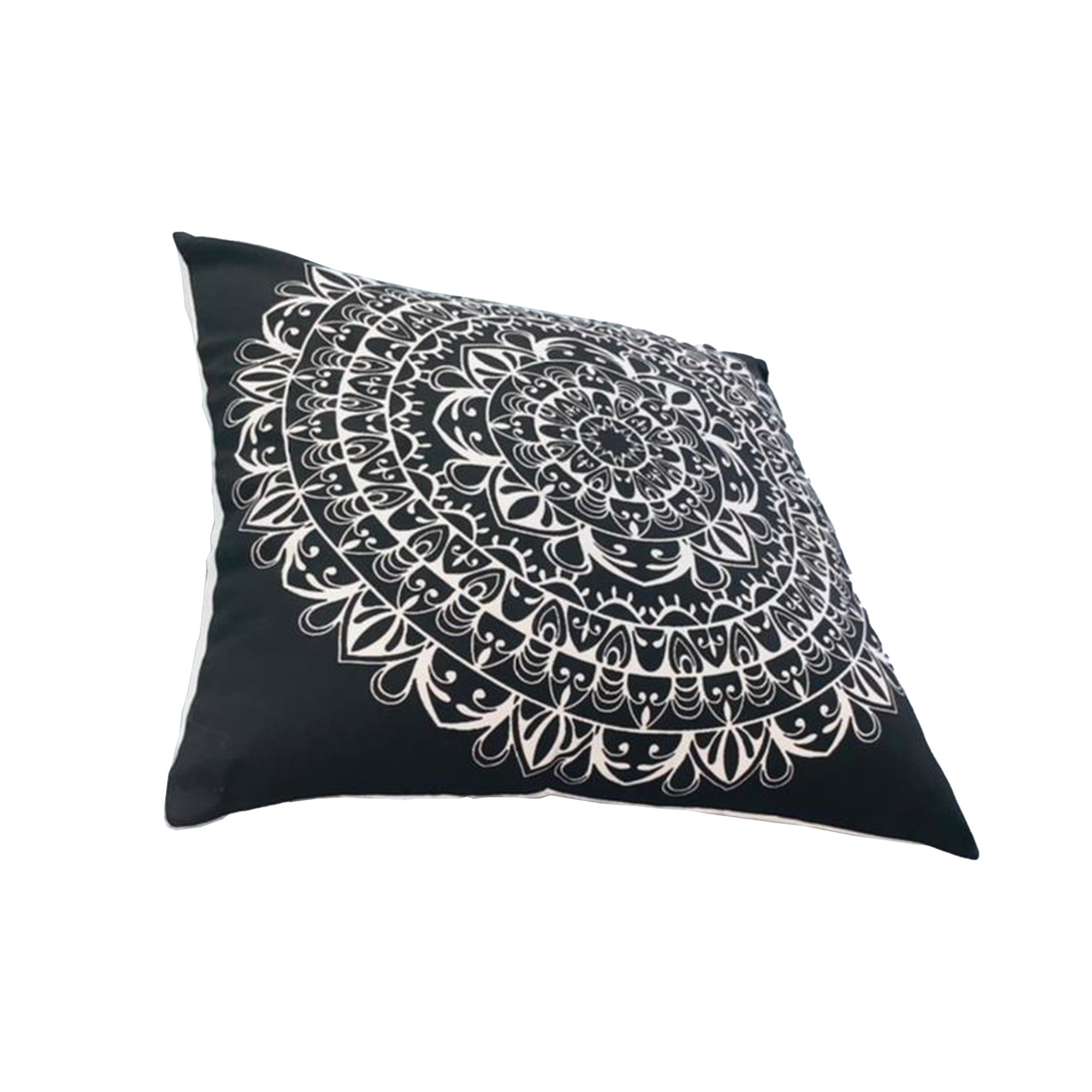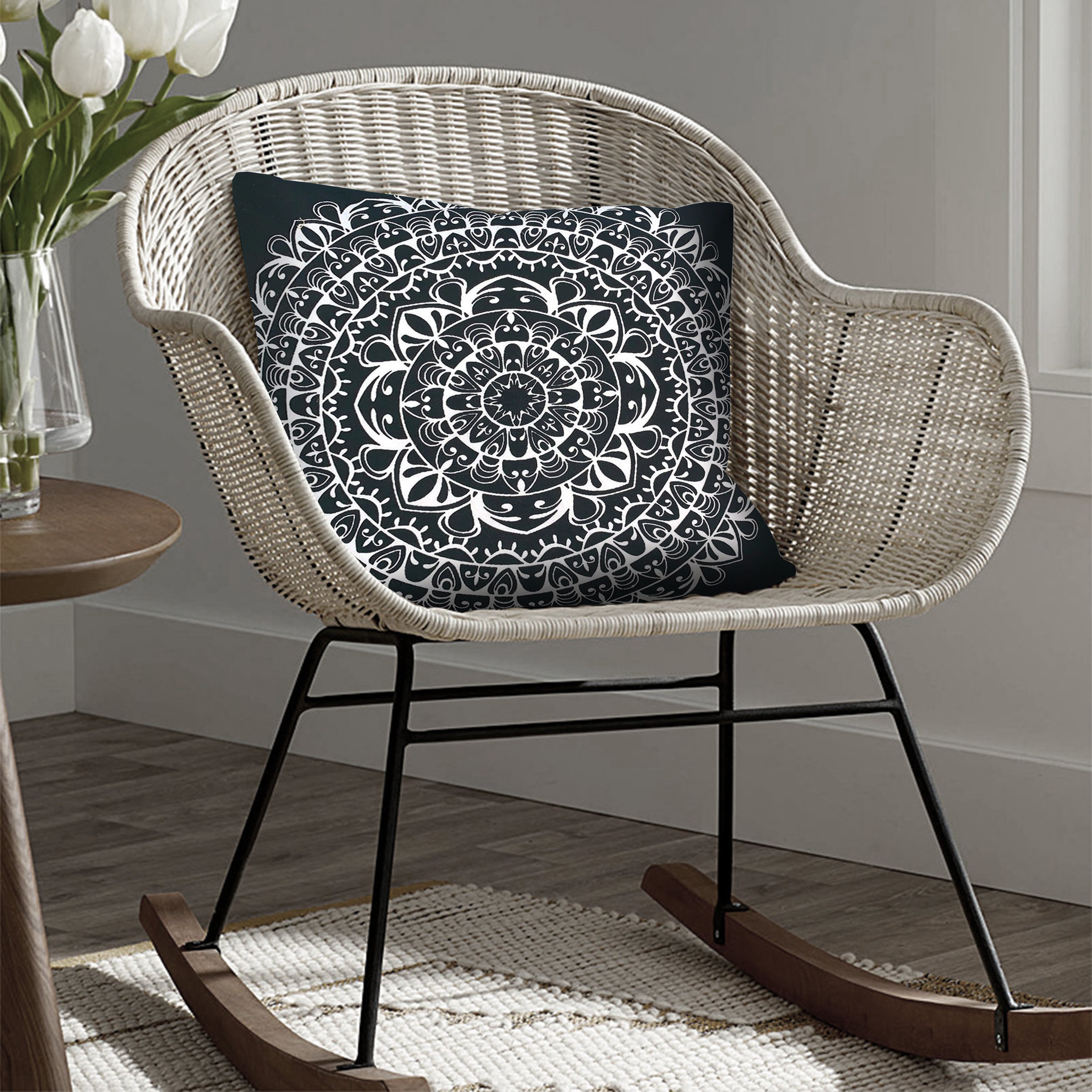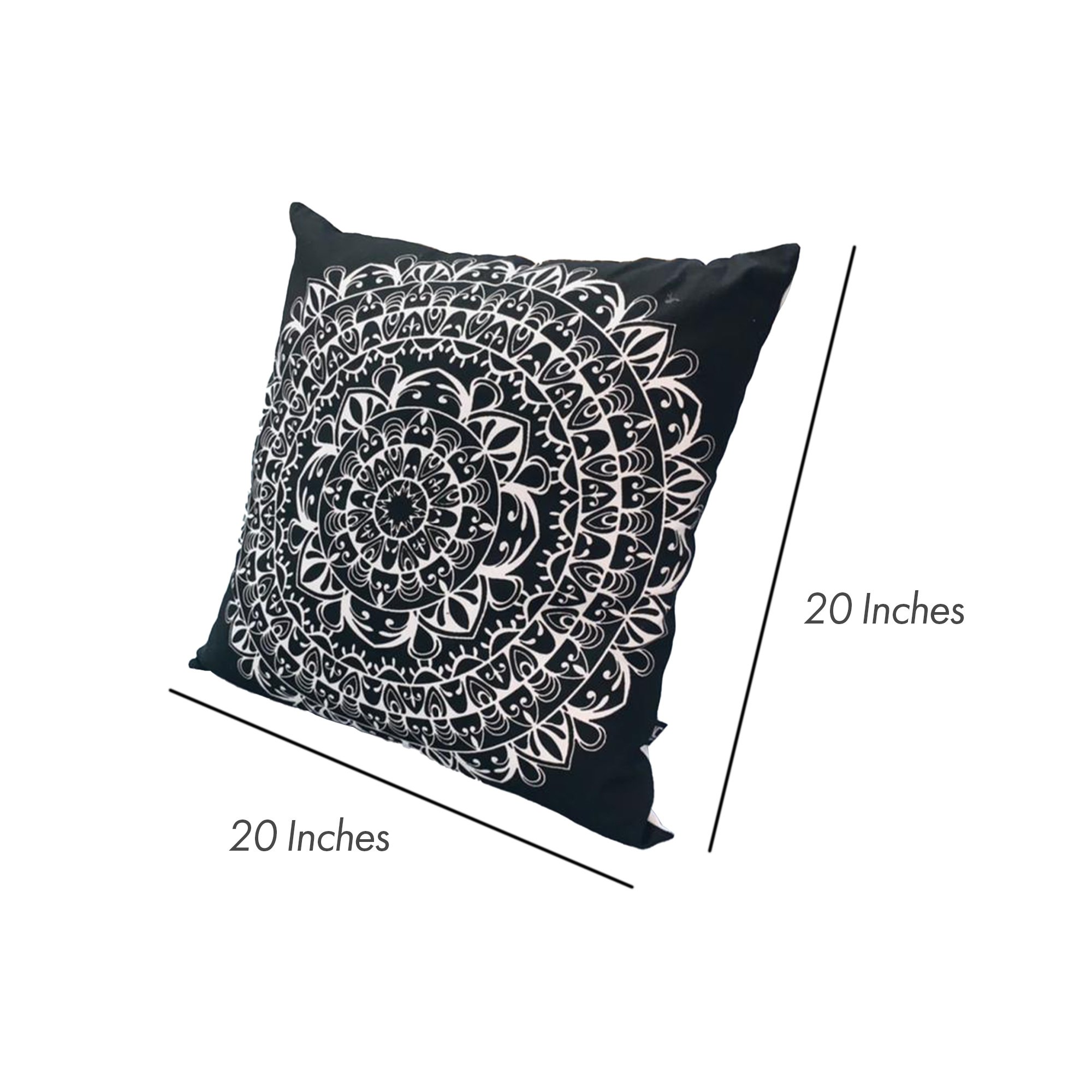 20 x 20 Modern Square Cotton Accent Throw Pillow, Mandala Design Pattern, Black, White